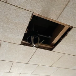 Installed a ceiling fan where none existed before. Ceiling was originally lowered from 9 to 8 feet. Reinforced gap between ceilings and added hidden support for the new fan. Added a dedicated fan circuit and switches for lighting at each doorway.